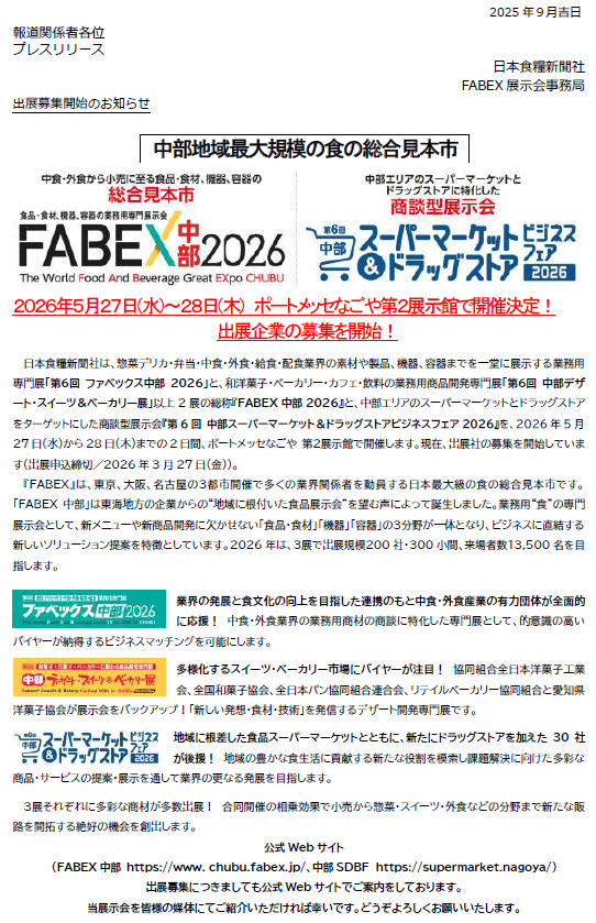 プレスリリース2025年9月号(開催決定&出展募集中のお知らせ)です。
