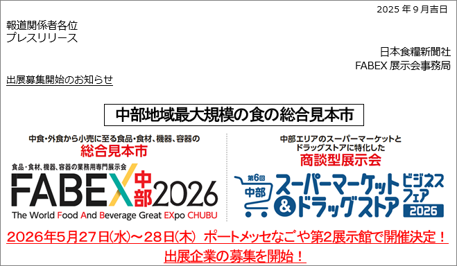 > 「中部スーパーマーケット&ドラッグストアビジネスフェア2026」プレスリリース2025.9月号